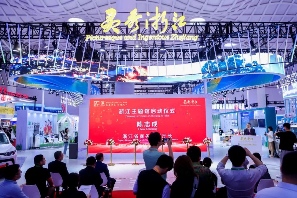 開幕式當天下午,商務部副部長盛秋平在浙江省商務廳副廳長陳志成等領導的陪同下,蒞臨浙江館參觀。
